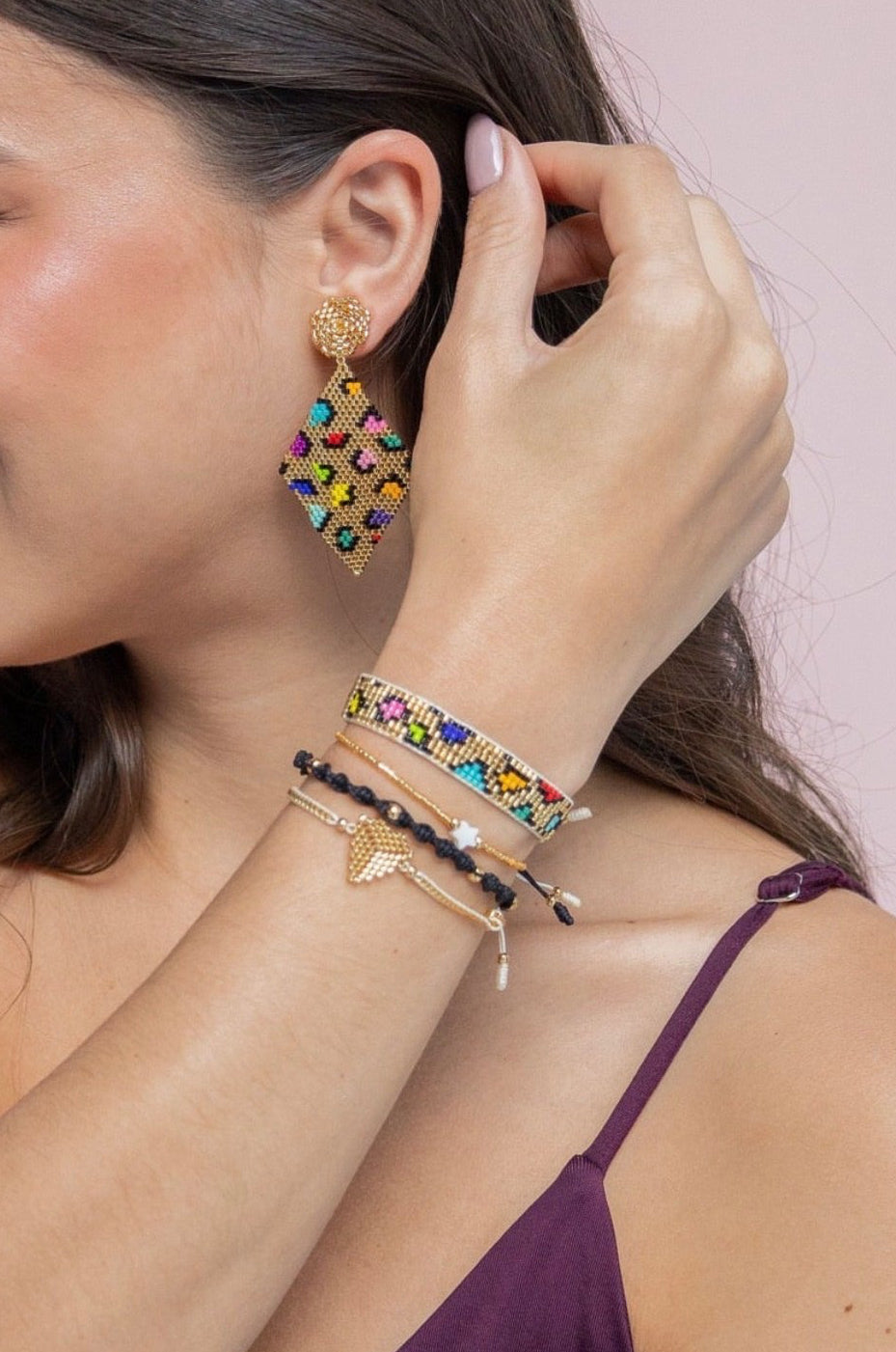 • Earrings handcrafted using Japanese Miyuki beads.