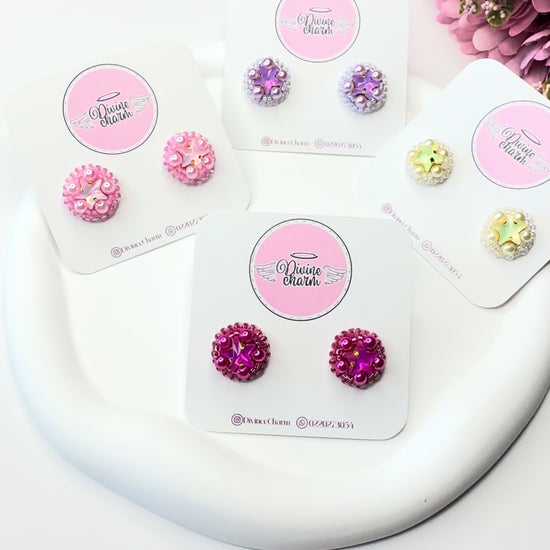 Small in size, big in sparkle — Star Drops are the kind of earrings you’ll reach for daily. Hand-embroidered in Aotearoa with star-shaped crystals, pearls and shimmering seed beads, they shine with quiet confidence and charm.